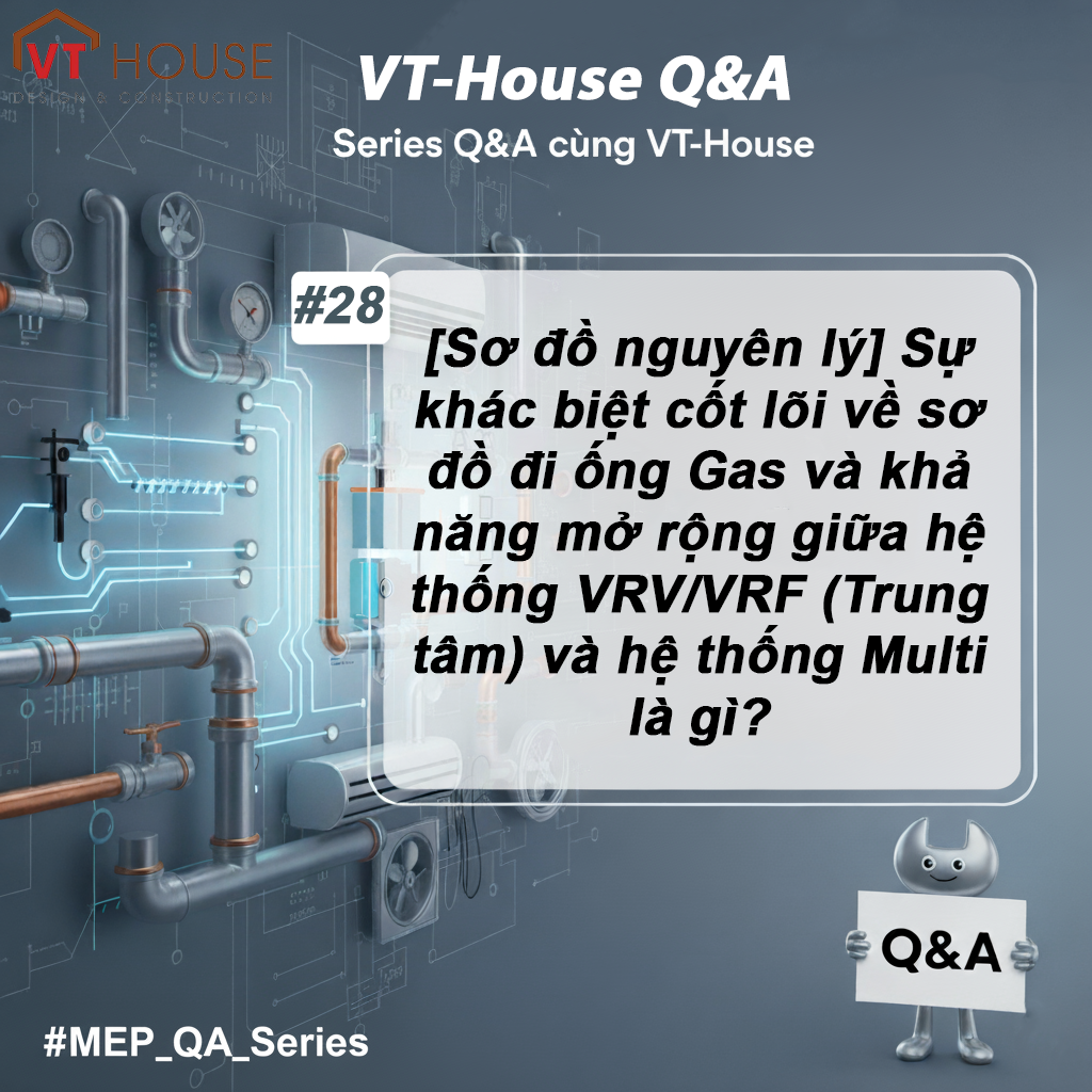 Tuy nhiên, dưới góc nhìn chuyên môn của các kỹ sư MEPF tại VT House, sự khác biệt lớn nhất giữa hai hệ thống này không đơn thuần là giá cả hay thương hiệu, mà nằm ở sơ đồ nguyên lý đi ống gas và khả năng thích ứng với nhu cầu mở rộng trong tương lai.